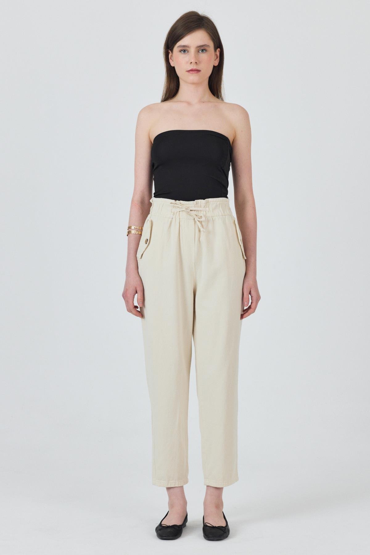Taş Cep Düğme Detaylı Bel Lastikli Pantolon 006