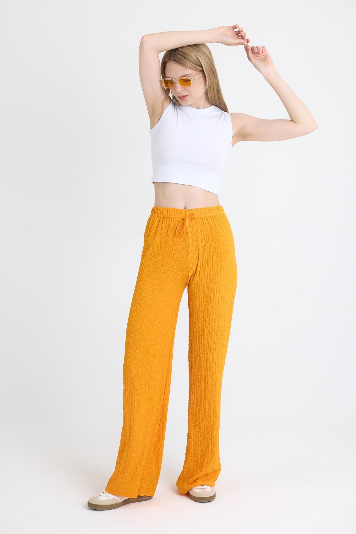 Orange Geniş Paça Dökümlü Bürümcük Kumaş Pantolon 326
