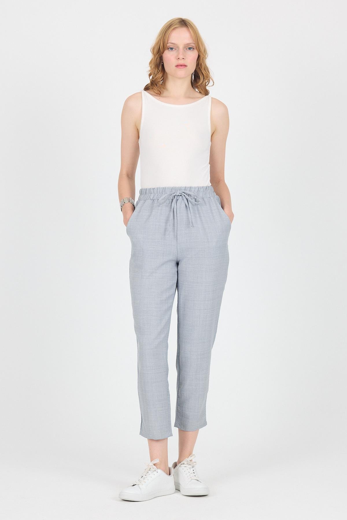 Gri Pamuklu Bel Lastikli Düz Paça Düz Paça Pantolon 4800