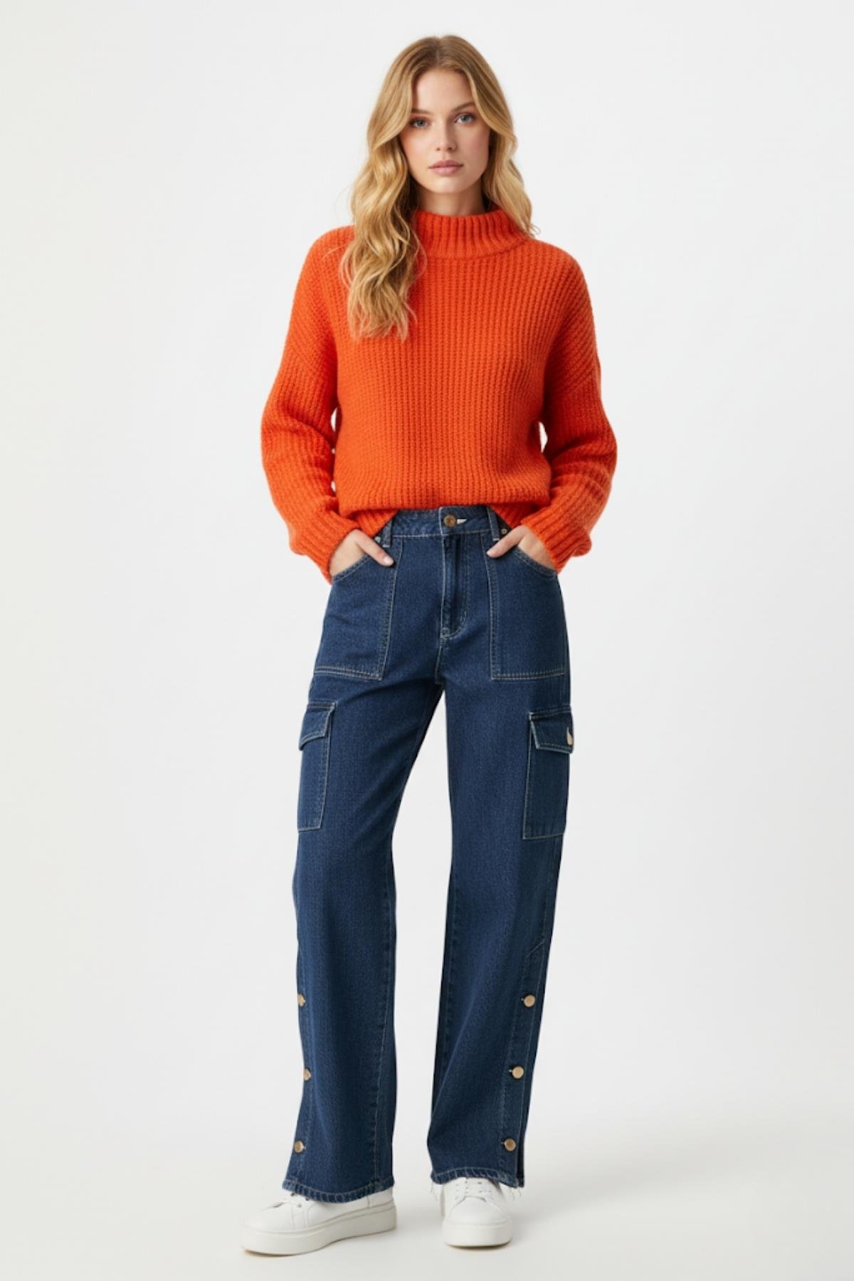Mavi Kadın Paça Düğmeli Yüksek Bel Jean Kargo Pantolon 1055